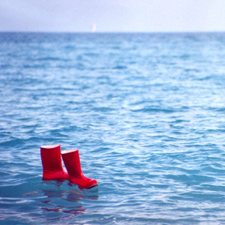 rubber boots (size 42), paint, cotton, steel, cork, nylon, and Mediterranean Sea, 2.509.969 km² or Lago Maggiore, 212,2 km².